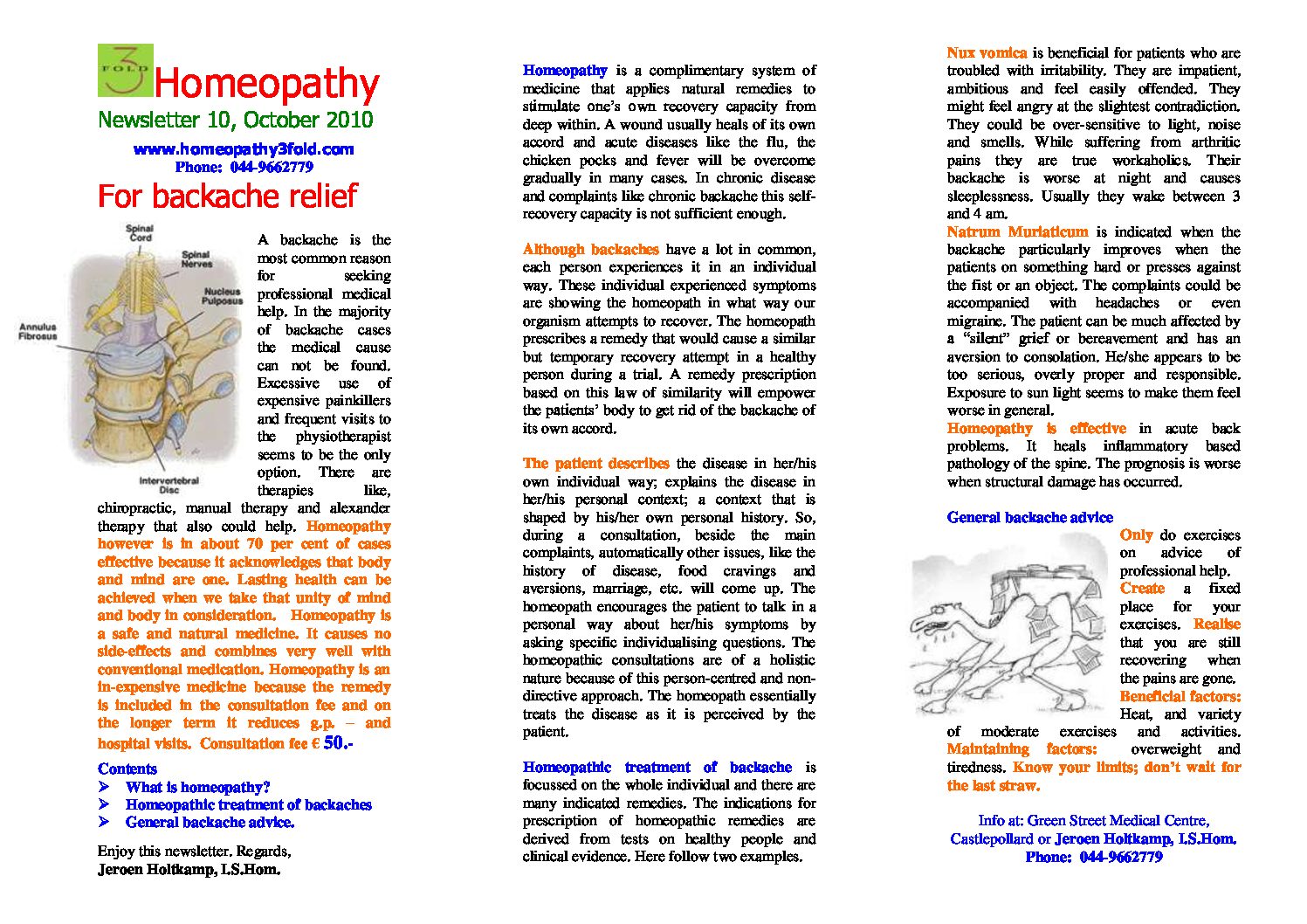 Backache relief Oct 2010